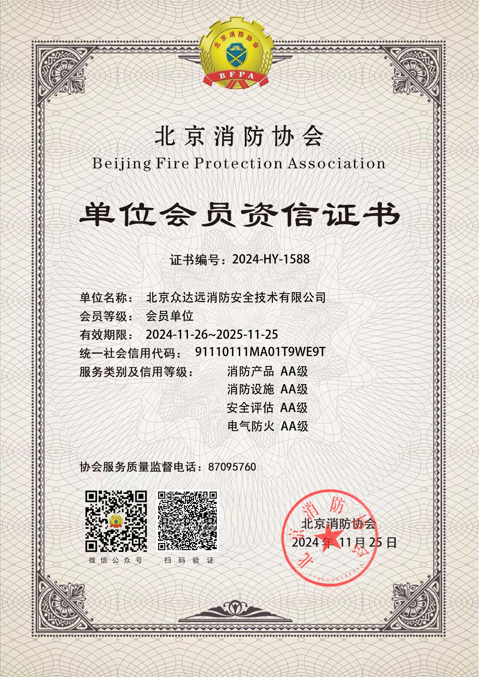 公司主营项目:消防技术服务;建筑消防设施检测;建筑电气防火检测;建筑消防设施维护保养;建筑消防安全评估、咨询;销售、维修消防器材、设备。